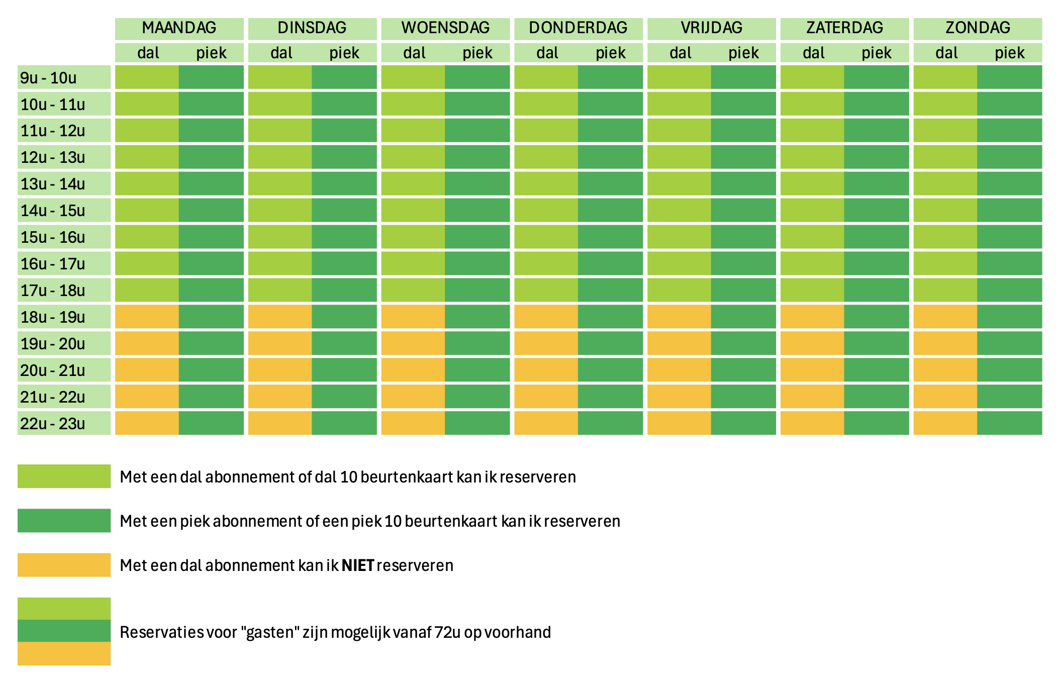 Dalabonnementen en gasten kunnen niet in de oranje periode reserveren.